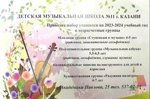 - Зачисление в 1 класс будет проводиться по результатам прослушивания. Правила приема размещены на сайте школы в разделе «Доска объявлений».