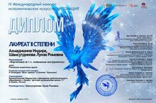 Лауреат I степени на Международном конкурсе исполнителей общего фортепиано "Белый Рояль"