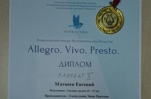 Матвеев Евгений - Лауреат 2 степени, преподаватель Галиуллина Эмма Раисовна;