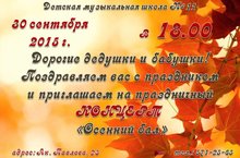 30 сентября 2015 г. в нарядной обстановке зала Детской музыкальной школы №11 прошел концерт, посвященный Международному дню пожилых людей «Осенний бал»