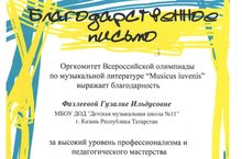 Фазлееву Гузель Ильдусовну и ее учеников с успешным участием в Всероссийской олимпиаде "Musicus iuvenis"