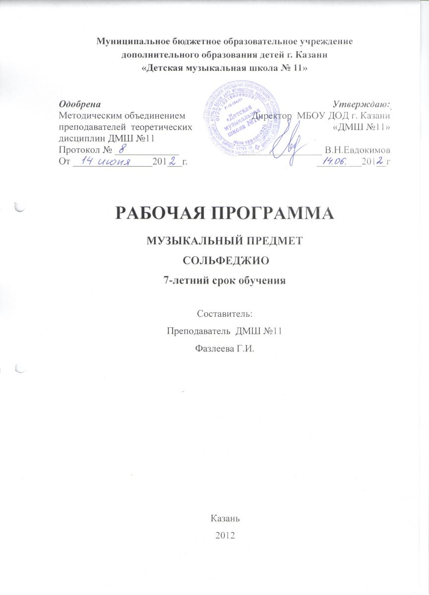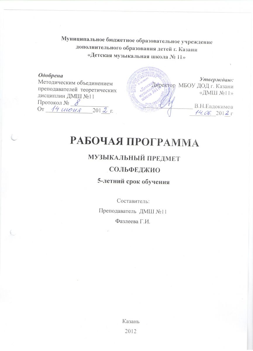 Музыкальный предмет "СОЛЬФЕДЖИО" 5 летний срок обучения