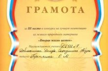 Поздравляем Сафиуллину Айгуль и Давлетшину Диляру, а так же преподавателя Перетягину Ольгу Михайловну с победой в городском конкурсе "Вторая жизнь цветов" (3 место), который проходил в Казанском Зооботсаде.