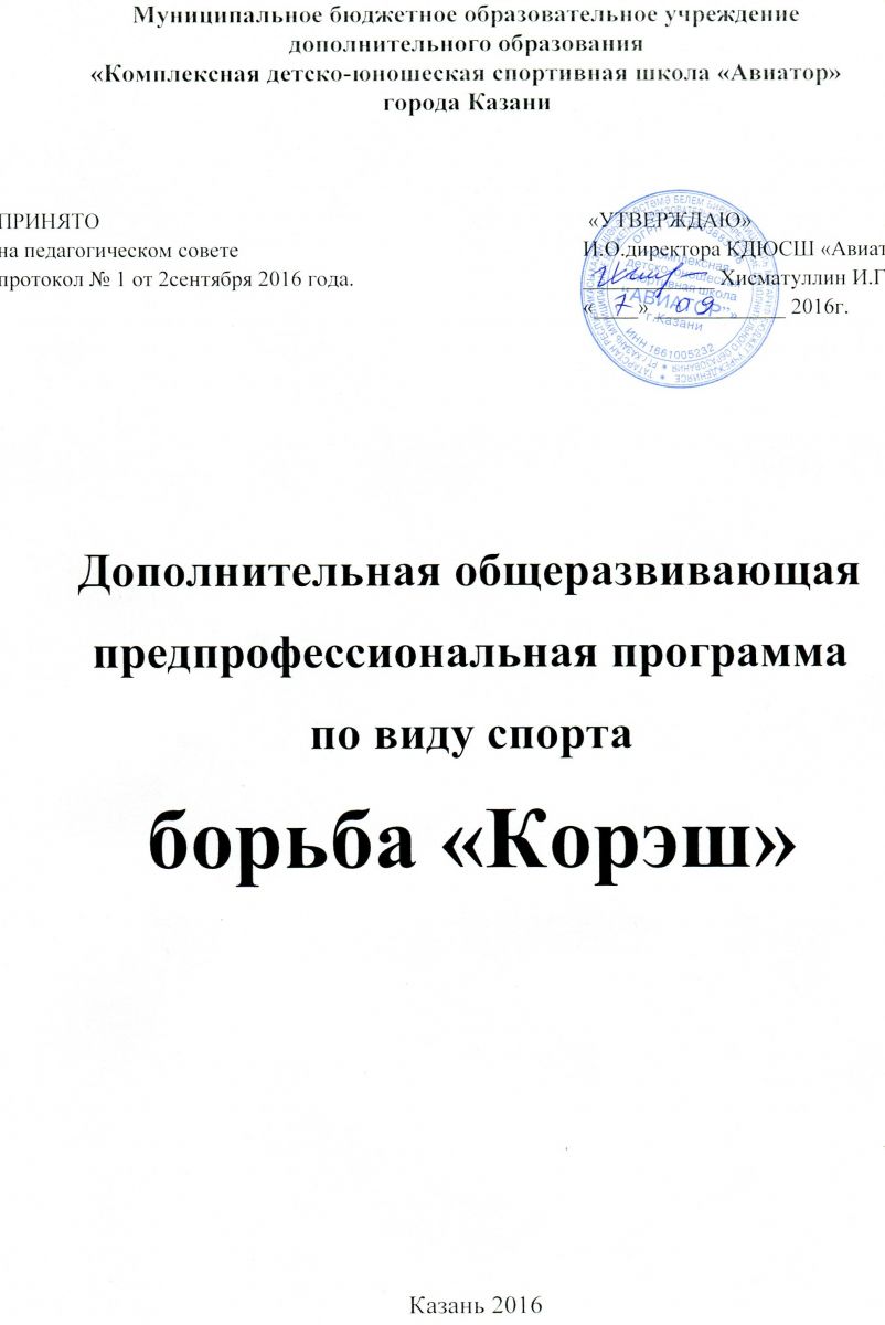 12. Образовательная программа по борьбе "Корэш" по предпрофессиональной подготовке