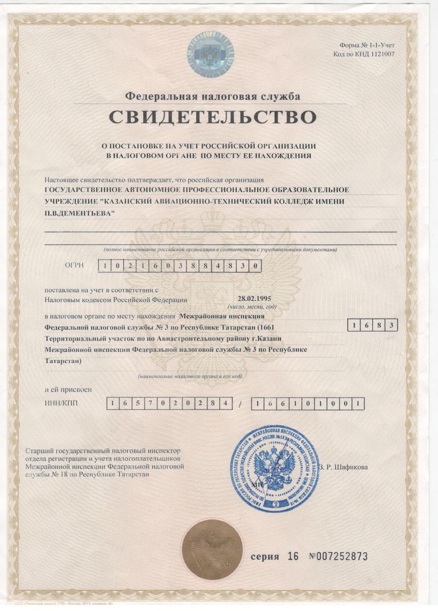 - Свидетельство о постановке на учет Российской организации в налоговом органе