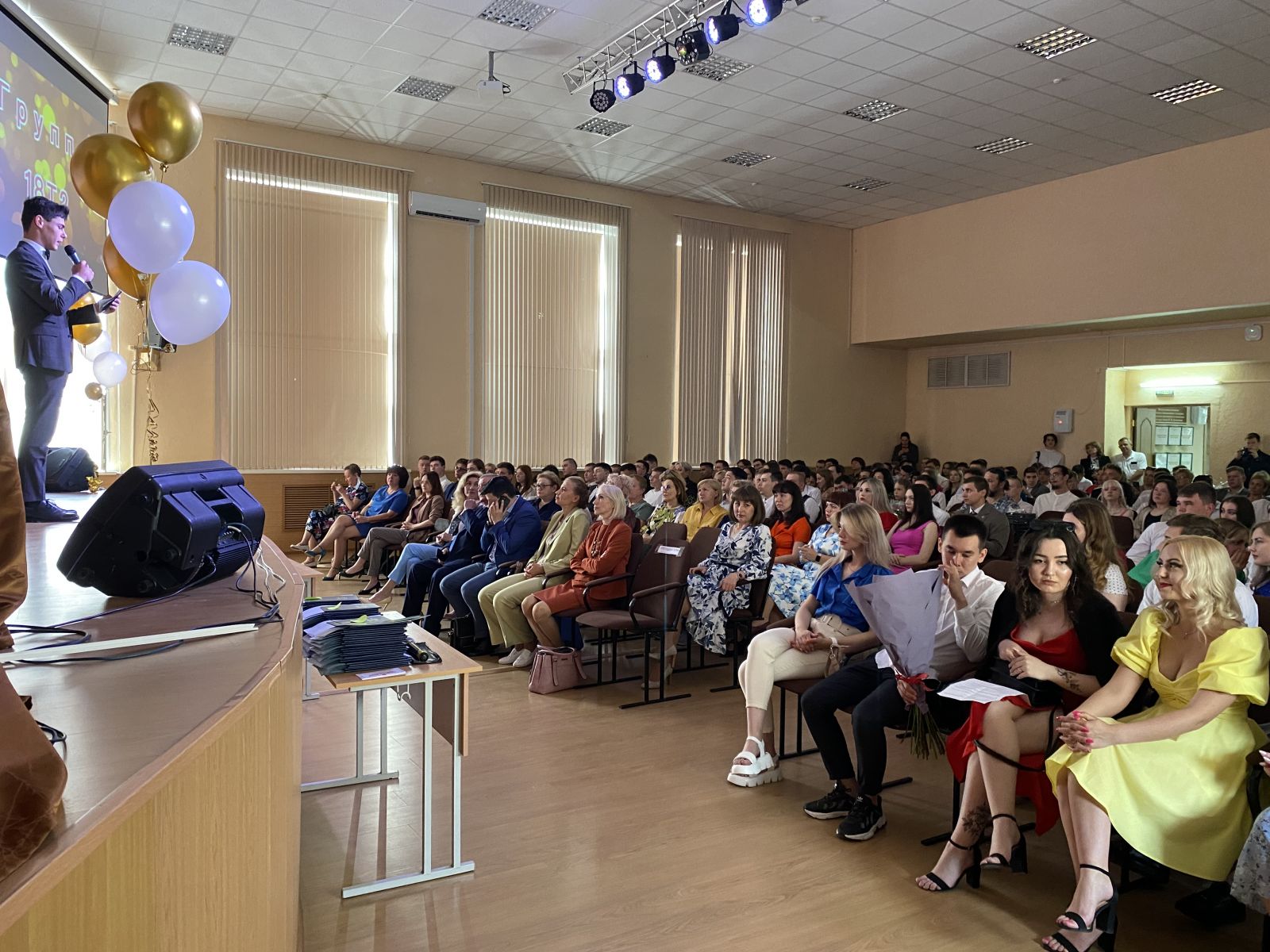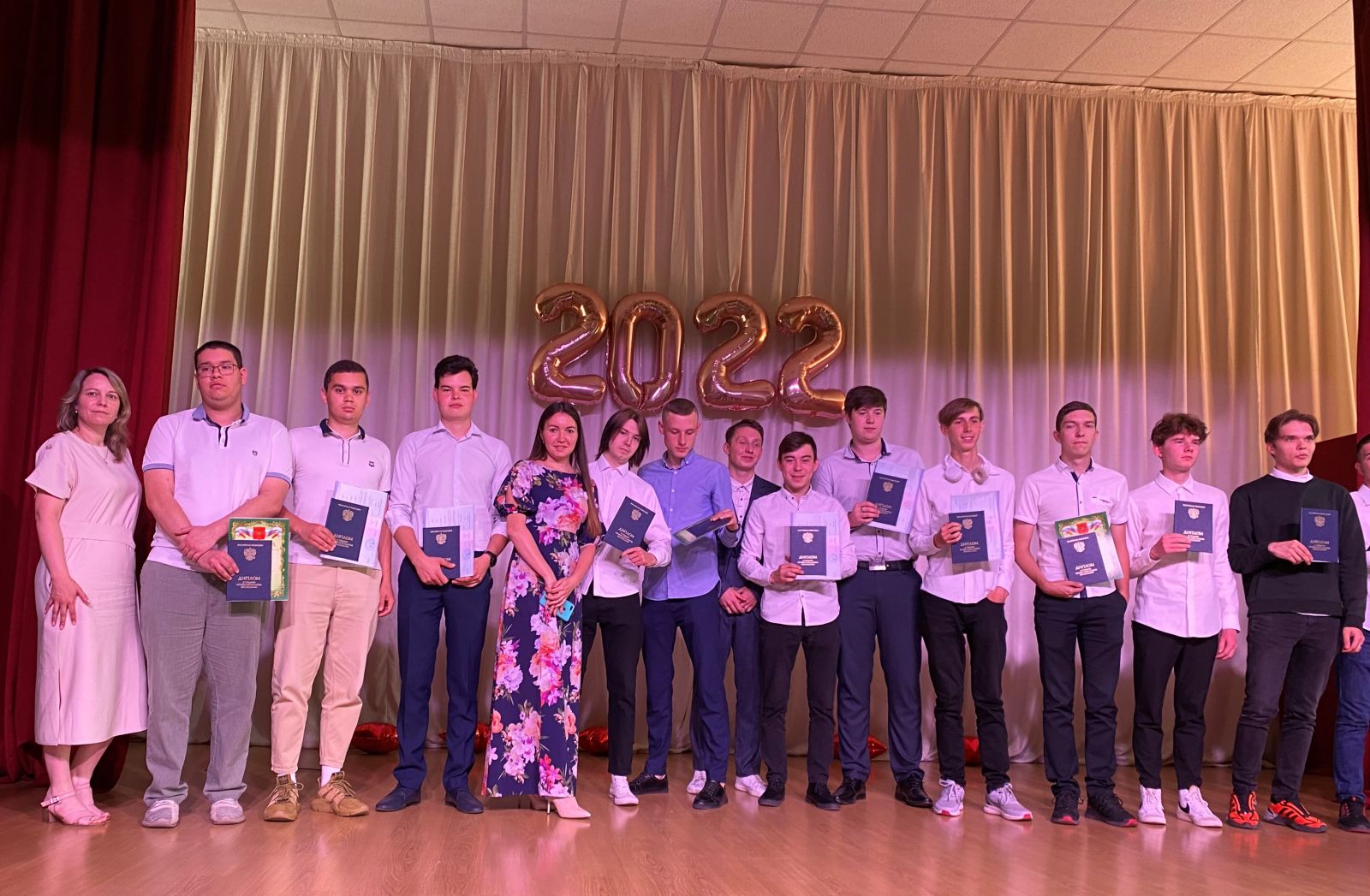 Опубликовано: 30.06.202230.07.2022г. в актовом зале колледжа состоялось торжественное мероприятие, посвященное вручению дипломов о среднем профессиональном образовании «Выпуск - 2022». В этот день звучало много слов благодарности в адрес педагогического коллектива, от самих выпускников и от их родителей, а также от администрации колледжа, классных руководителей и гостей колледжа.
