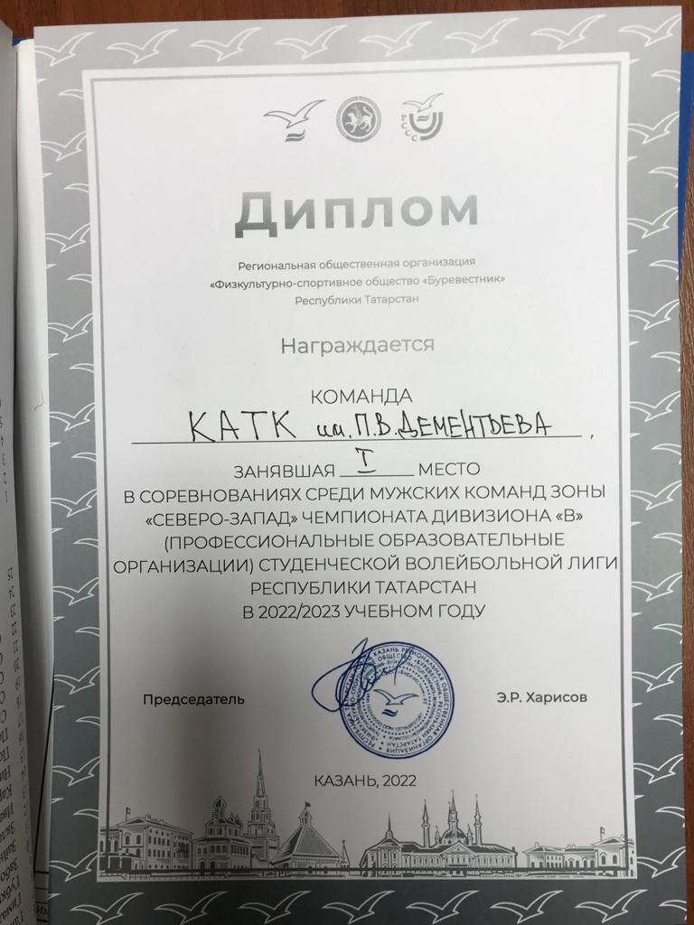 Опубликовано: 07.12.20226 и 7 декабря 2022 сборная команда юношей приняла участие в студенческой волейбольной лиге Республики Татарстан и заняла итоговое первое место в соревнованиях среди мужских команд зоны «северо-запад» чемпионата дивизиона «В».