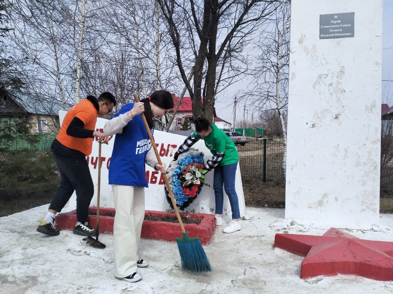 Опубликовано: 18.04.202318 апреля в Международный день охраны памятников и исторических мест студенты филиала колледжа вышли на уборку памятника Героя Советского Союза В. И. Осипова д. Большие Бутырки. Ребята вышли, чтобы убрать осенние листья и ветки. Хорошая погода поспособствовала работе и отличному настроению.