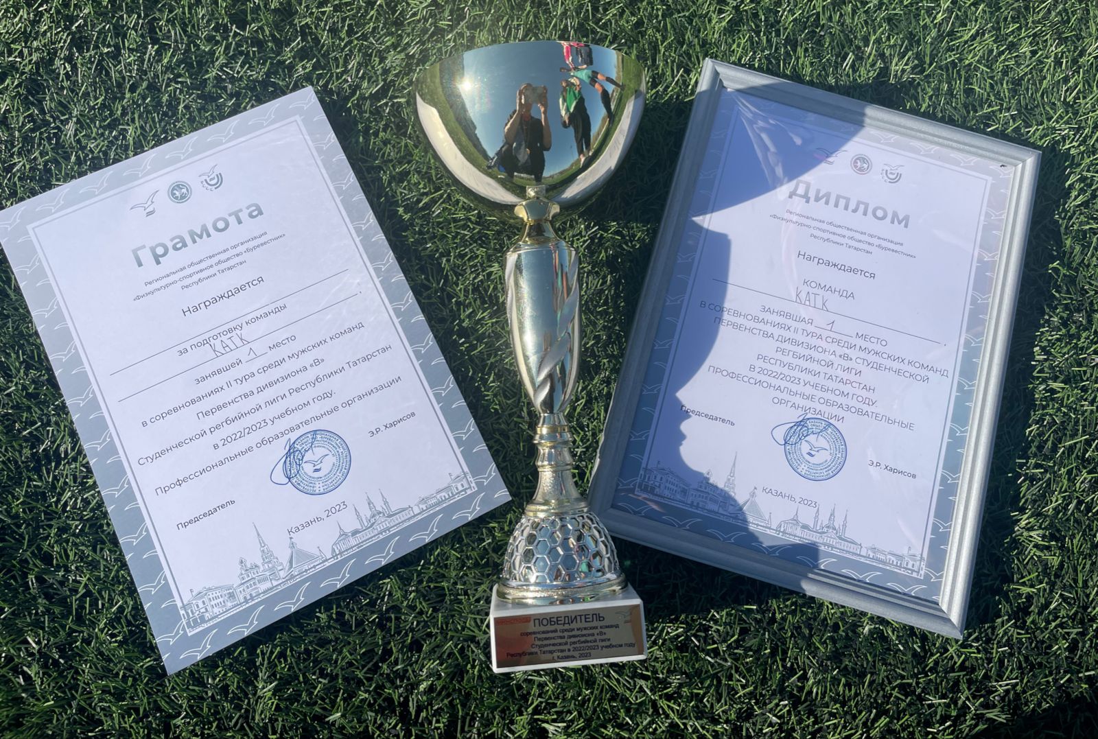 Опубликовано: 23.04.202323 апреля 2023г. прошли соревнования II тура среди мужских команд первенства дивизиона «В» студенческой регбийной лиги Республики Татарстан среди профессиональных образовательных организаций, где команда нашего колледжа заняла первое почетное место. Поздравим наших спортсменов и пожелаем в будущим великих побед. Спасибо вам за сплоченную четкую работу и сердечное отношение к ней.