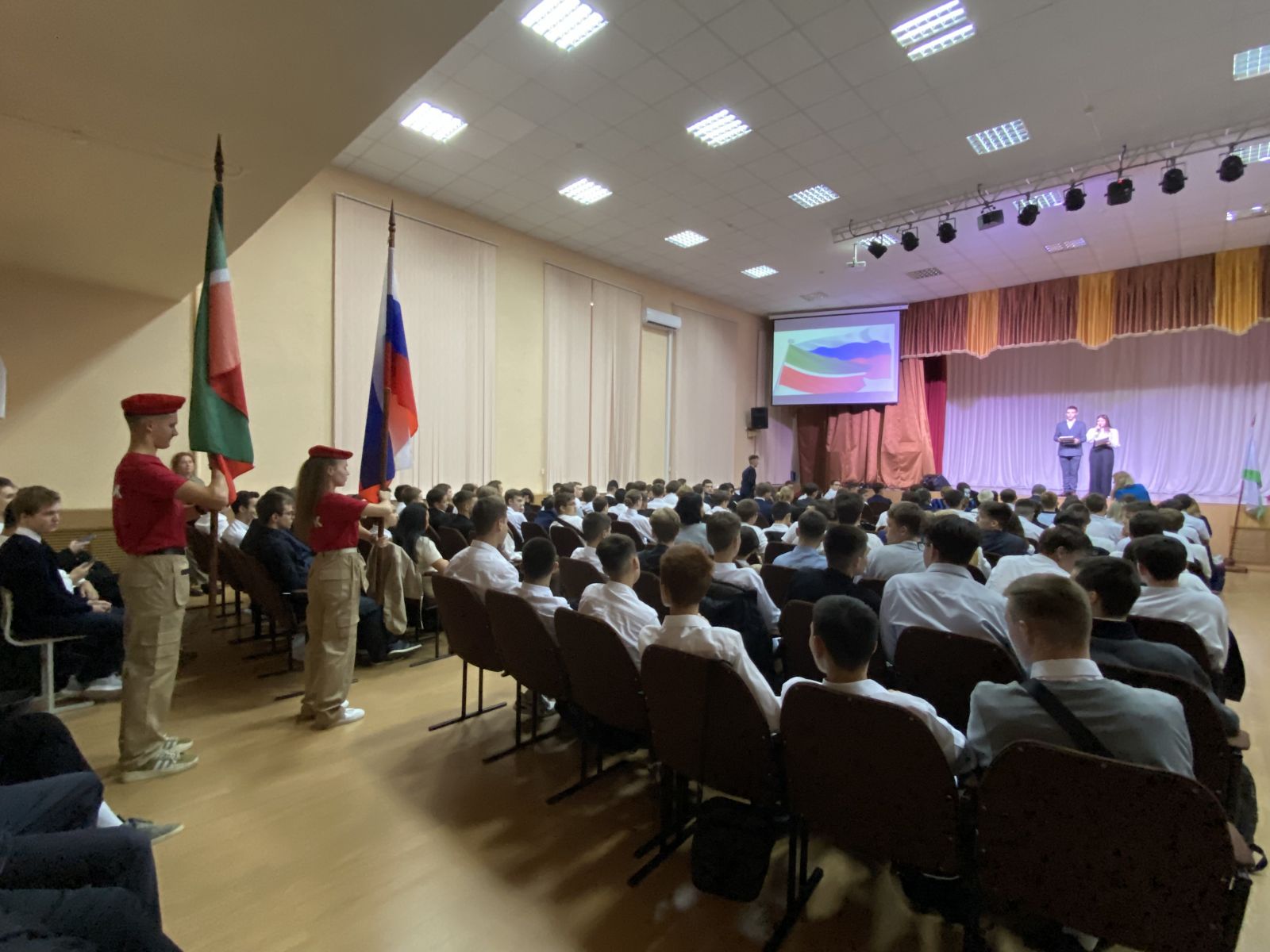 Праздник начался с зажигательных танцев и задорных песен, студенты 1 курса подготовили творческие номера и презентации от своих групп. Прозвучали напутствия первокурсникам от заместителей директора Шамсутдинова Р. Р., заведующей Алманкиной А. А., Сафиной Ч.Х.