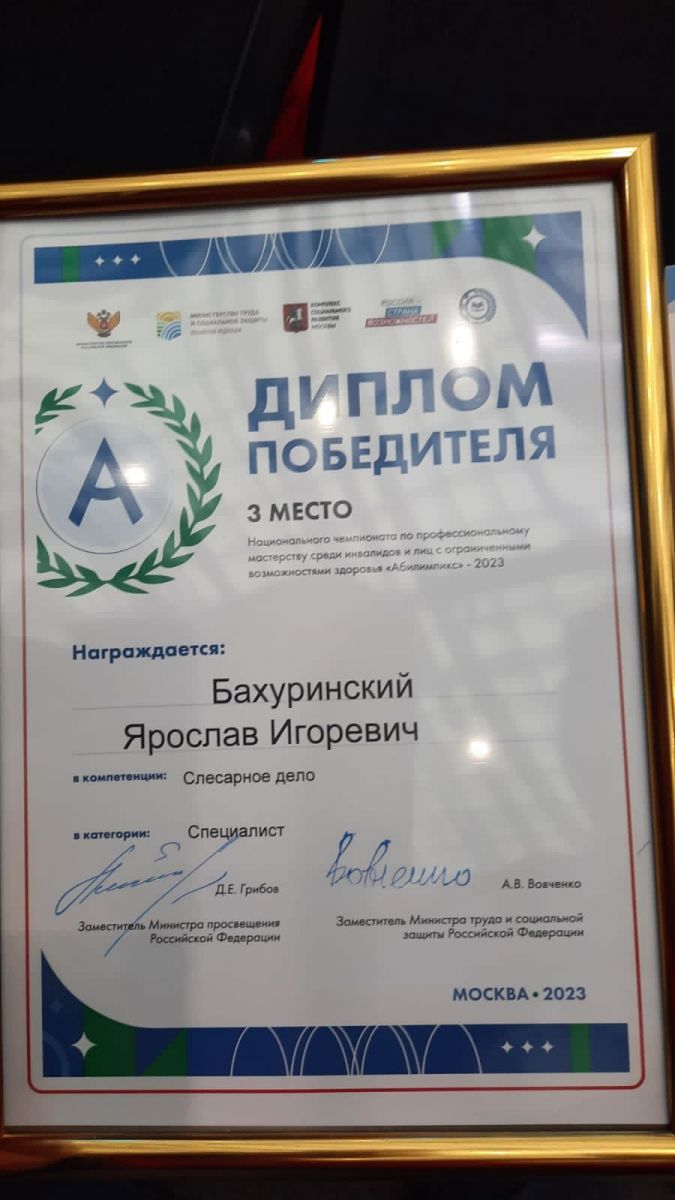 Опубликовано: 20.10.2023С 20-23 октября в г.Москва проходит Национальный чемпиона по профессиональному мастерству среди инвалидов и лиц с ОВЗ «Абилимпикс» 2023. От СЦК нашего колледжа выступают участники в категориях «Школьник» и «Специалист» по компетенции «Слесарное дело». Результаты чемпионата: