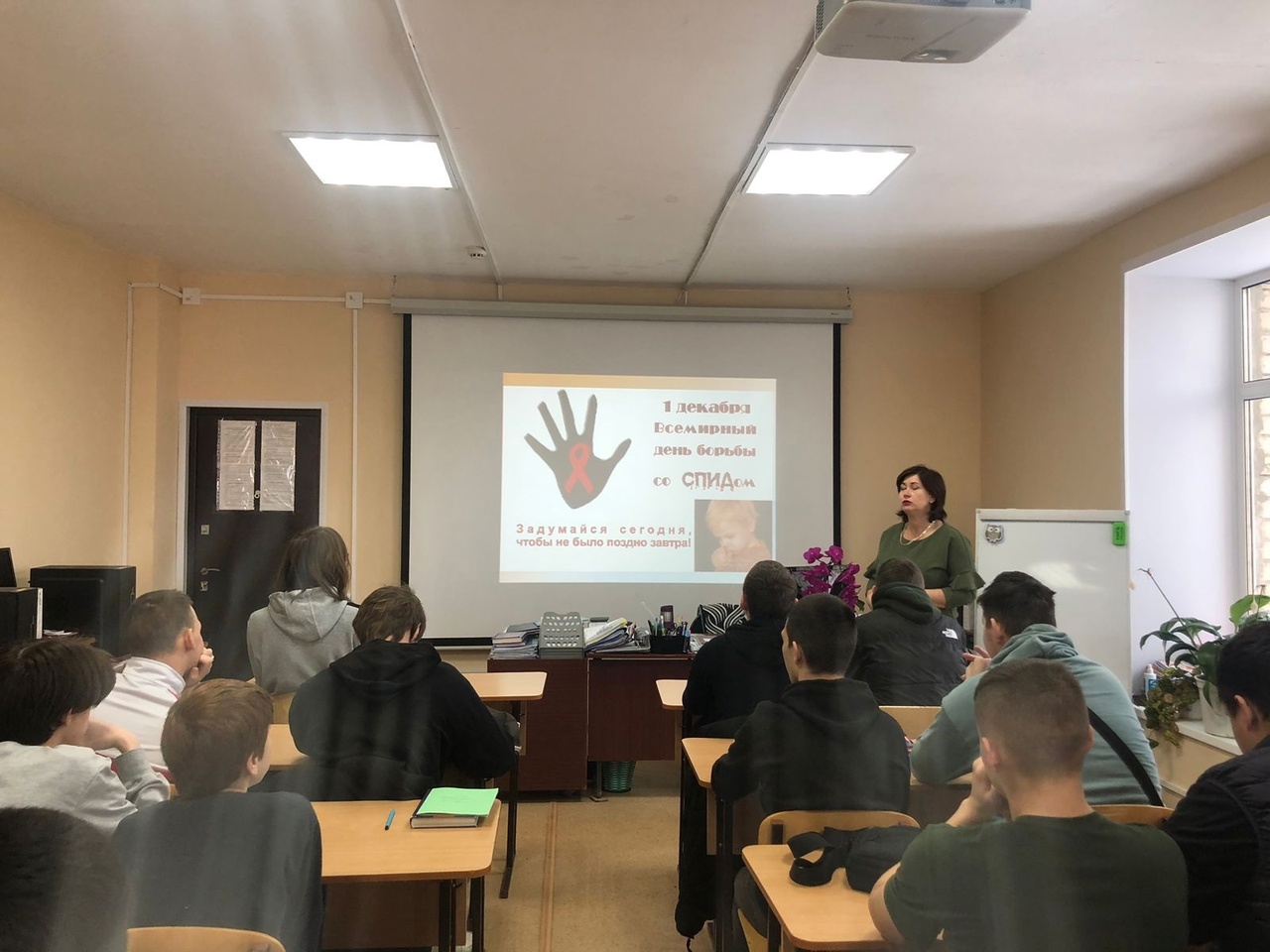 Опубликовано: 01.12.2023В филиале колледжа прошли классные часы на тему "СПИД –чума 21 века", посвященные Всемирному дню борьбы со СПИДом, который отмечается 1 декабря.