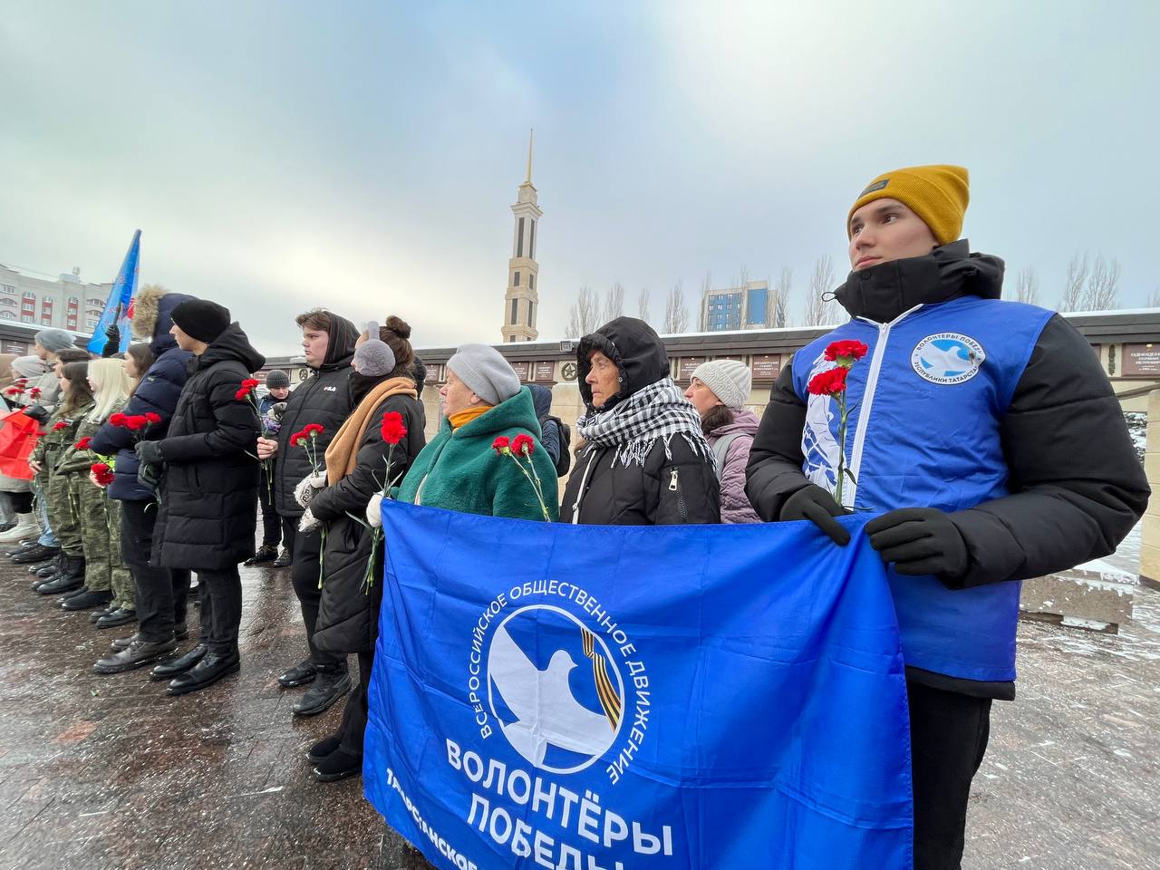 Наши волонтёры приняли участие в памятной церемонии и возложении цветов у Вечного огня в честь Дня Неизвестного солдата.