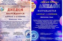 Наша ученица 8а класса Шамхалова Аиша участвовала в конкурсах "Грезы Рассвета", "Время Побед". Аиша стала лауреатом 1 степени в этих конкурсах. Мы благодарим учителя технологии Ульянову Людмилу Николаевну за подготовку нашей ученицы.