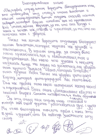 В этот день ребята описывали свои эмоции от проведенного времени, а также писали свои пожелания в адрес организаторов профильной смены.