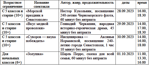 Севастопольский ТЮЗ представит следующие спектакли (все спектакли участвуют в государственной программе «Пушкинская карта»:
