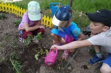 На нашем огороде дети совместно с воспитателем посадили укроп, картошку, морковь, свеклу, лук, петрушку, тыкву и ухаживают за ними. В процессе наблюдений и посильного труда они узнали, что их рост и развитие зависят не только от солнечного света, тепла, влаги, почвы, но и от ухода. Мы учим детей поливу, рыхлению, прополке, объясняем, что рыхлят для того, чтобы к корням растений лучше поступал воздух, учим отличать культурные растения от сорняков.