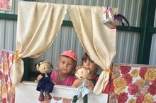 Сегодня наши воспитанники пробовали себя в роли актеров кукольного театра, они показывали своим друзьям из соседних групп театрализованное представление на своем участке, оформленном в виде мини - театра "Олимпионик".