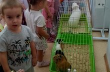 Сегодня к нам в гости приехала зоовыставка. Дети познакомились с такими животными, как сурикаты, белый заяц, кролик, морская свинка, джунгарский хомяк, попугай какарик, агама. Узнали много интересного про животный мир. Всем было весело - каждый старался познакомиться с животным поближе, потрогать их и даже покормить с рук.