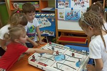 1 декабря - Всероссийский день хоккея. В это день воспитанники узнали очень много интересного о хоккеи, ознакомились с презентацией, соревновались с клюшами, поиграли хоккей. Хоккей на льду с шайбой — один из самых популярных видов спорта в нашей стране. В эту азартную игру играют и на льду во дворе, и в Ледовом Дворце спорта. Игроков в хоккей называют хоккеистами. Две команды хоккеистов на коньках на специальном ледовом поле соревнуются друг с другом в умении забивать клюшками шайбу в ворота противника. Также ребята соревновались в увлекательной игре настольного хоккея.