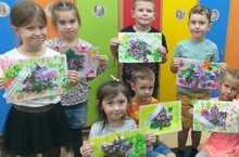 На кружке "Мастерская чудес" дети встретили осень яркими красками! Млдашая группа с большим интересом создавали своё "Осеннее дерево", работая красками и завершая работу блестками... Старшие и подготовительные к школе группы создали свою яркую аппликацию из салфеток!