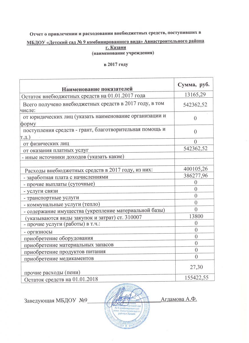 Отчет о привлечении и расходовании внебюджетных средств за 2017 год