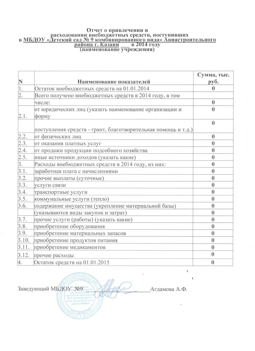 Отчет о привлечении и расходовании внебюджетных средств за 2014 год