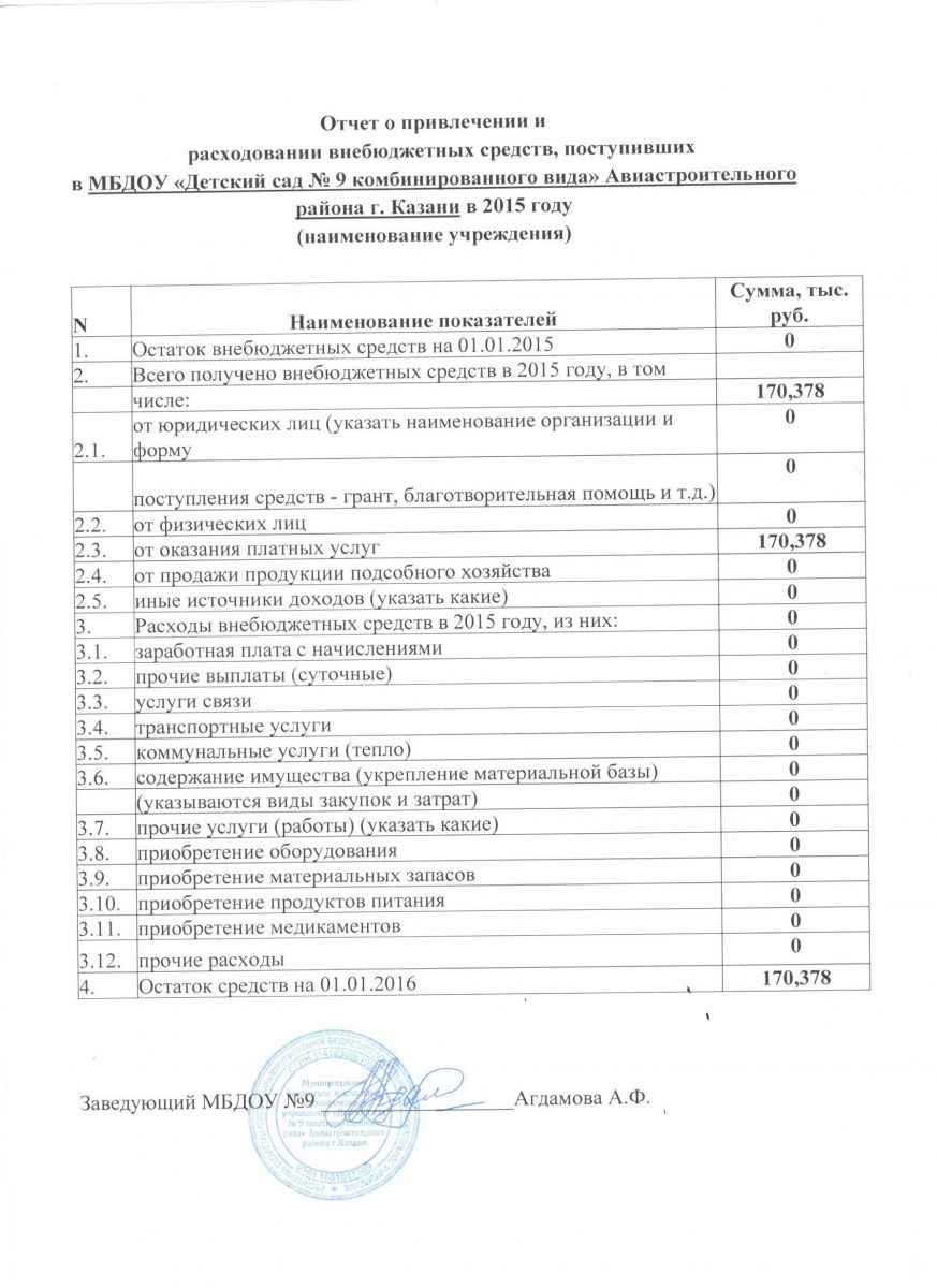 Отчет о привлечении и расходовании внебюджетных средств за 2015 год