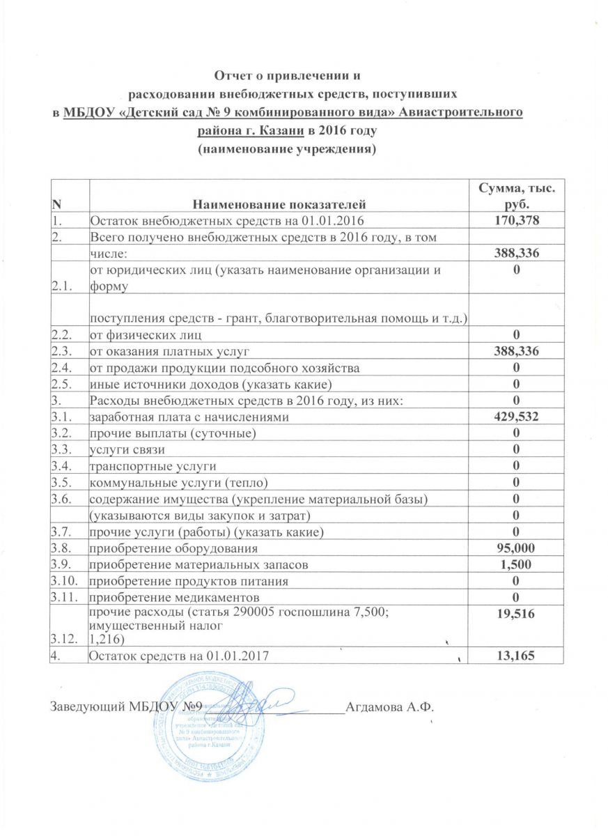 Отчет о привлечении и расходовании внебюджетных средств за 2016 год
