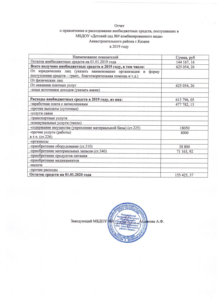 Отчет о привлечении и расходовании внебюджетных средств за 2019 год