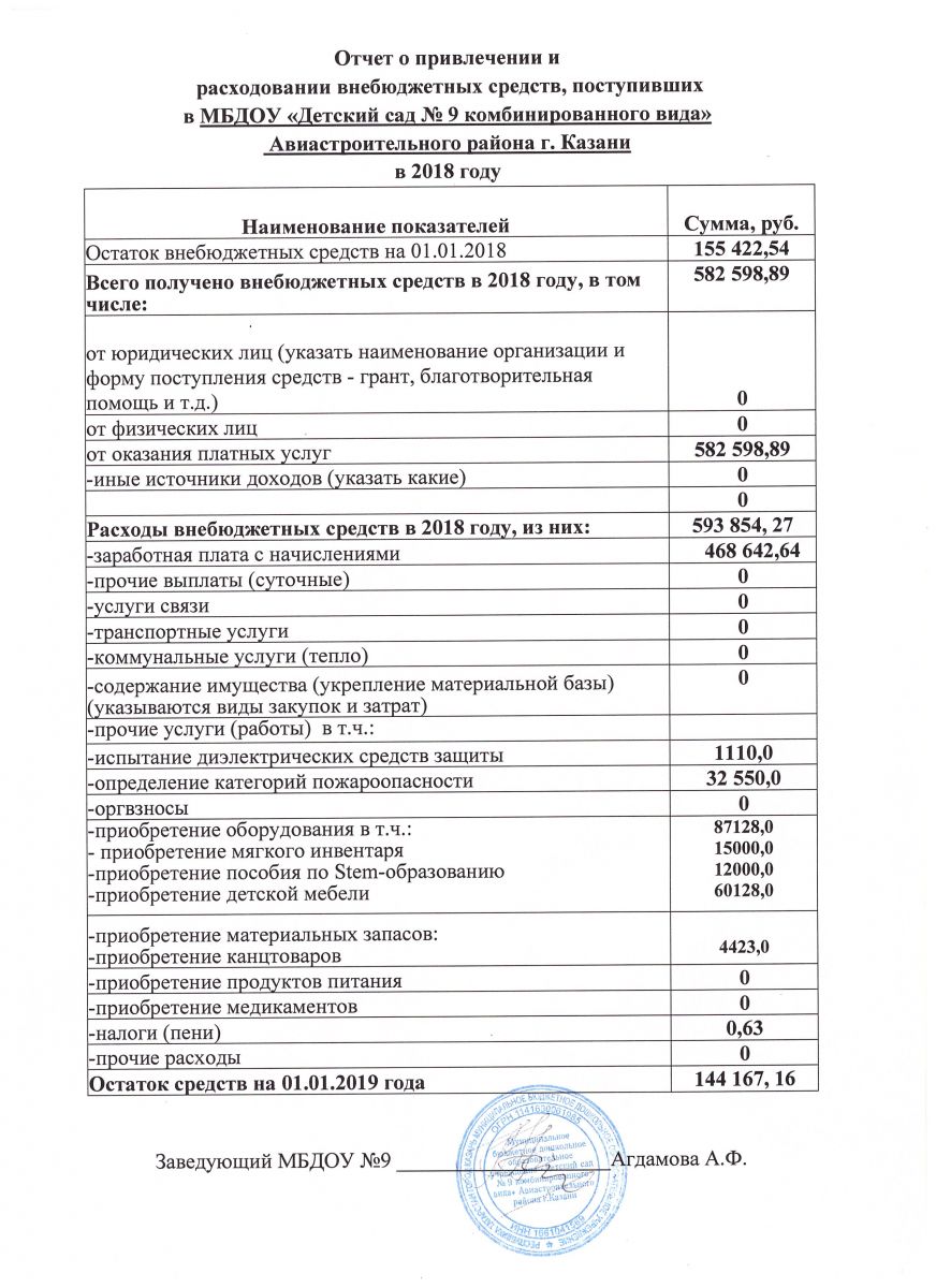 Отчет о привлечении и расходовании внебюджетных средств за 2018 год