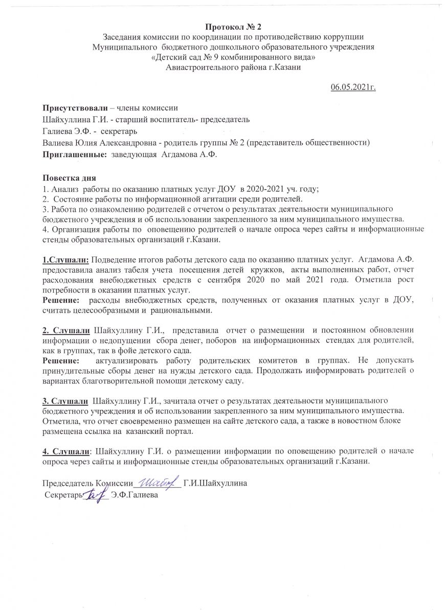 Протокол заседания комиссии по противодействию коррупции от 06.05.2021