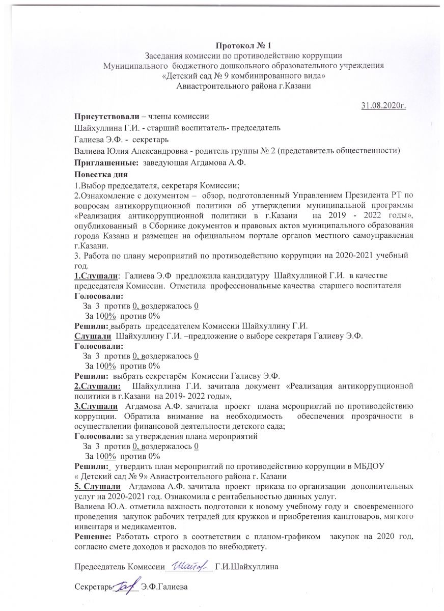 Протокол заседания комиссии по противодействию коррупции от 31.08.2020
