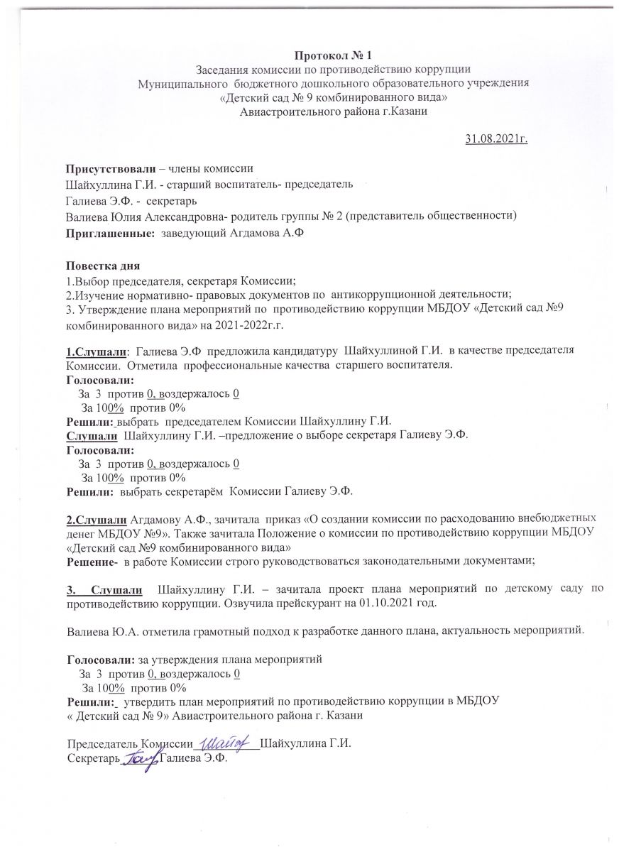 Протокол заседания комиссии по противодействию коррупции от 31.08.2021