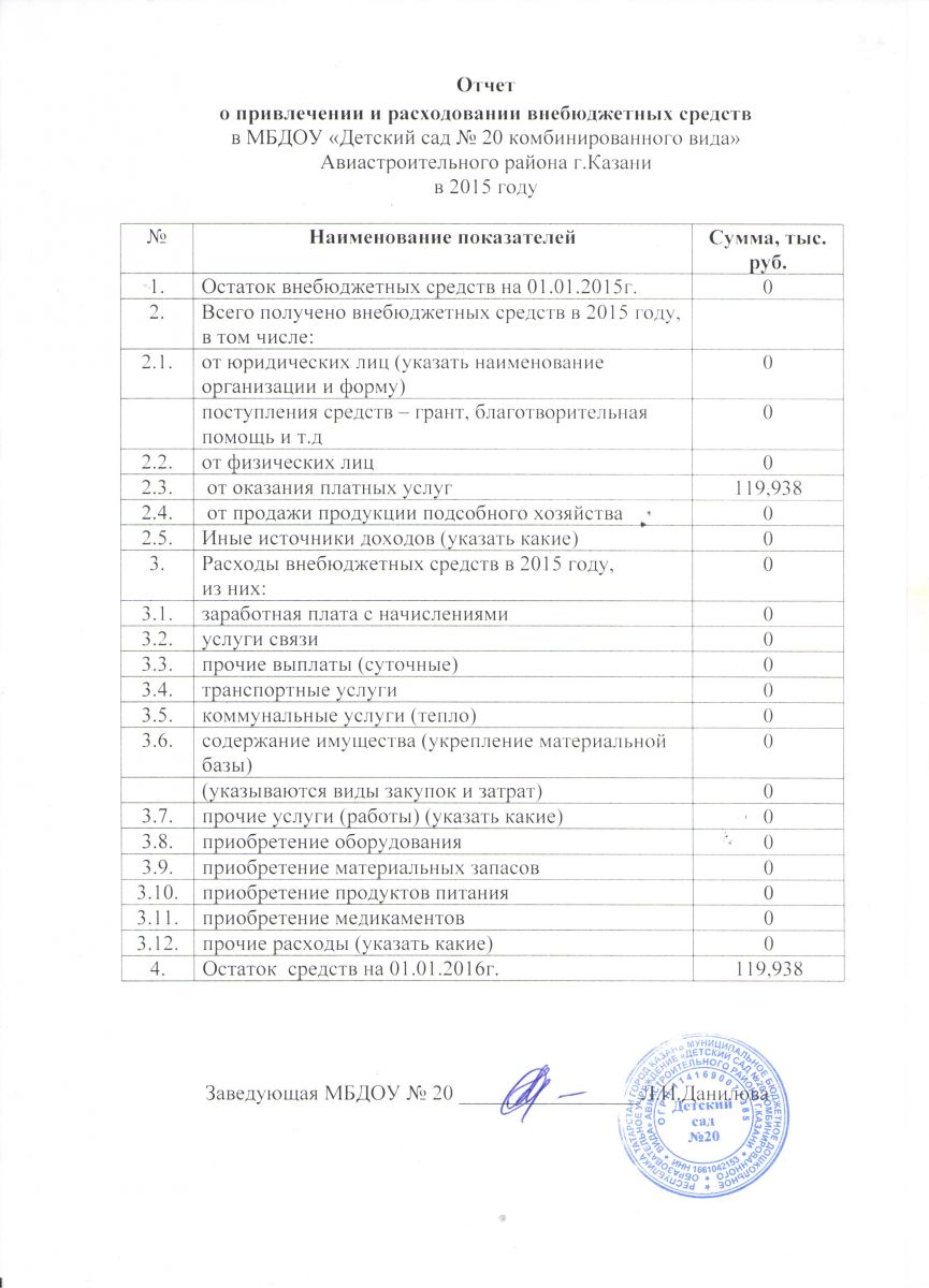 Отчет о привлечении и расходовании внебюджетных средств за 2015 год