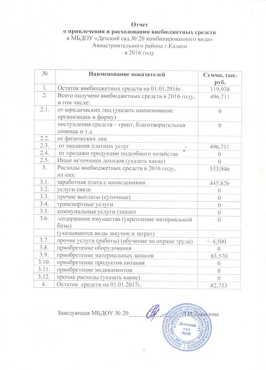 Отчет о привлечении и расходовании внебюджетных средств за 2016 год