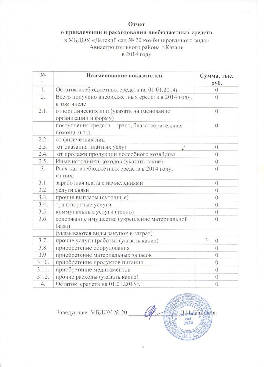 Отчет о привлечении и расходовании внебюджетных средств за 2014 год