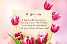 Среди весенних первых дней 8 Марта всех дороже. На всей земле, для всех людей Весна и женщины похожи. Любви, здоровья, счастья Вам И красоты Вам пожелаем И с первым праздником весны От всей души Вас поздравляем.