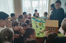 Советник по воспитанию Лилия Анасовна организовала вместе с активистами гимназии театр на столе. Ребята сделали из бумаги декорации и главных героев сказки «Колобок» и отыграли целую постановку.