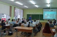 Перед учащимися 9-11 классов выступил кандидат исторических наук доцент кафедры ГУИС ФГБОУ ВО "КНИТУ" Поливанов Я.М. с лекцией о Сталинградской битве.