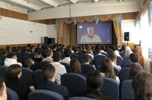Актив гимназии организовал просмотр фильмов о вдохновляющих историях научных деятелей. Учащимся среднего и старшего звена было предложено интервью с профессором Фишманом А.И. Мультфильм «День российской науки» посмотрели учащиеся 1-4 классов.