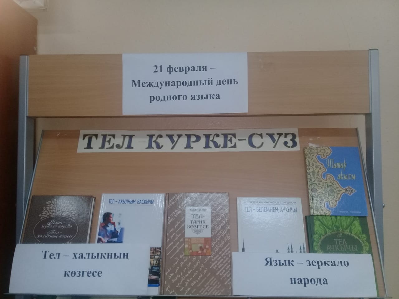 Ежегодно 21 февраля отмечается День родного языка. Человек не может существовать без языка, без языка не существовал бы мир. На языке мы думаем, общаемся, творим. В библиотеке гимназии была организована тематическая выставка "Тел күрке сүз", посвященная к Международному дню родного языка.
