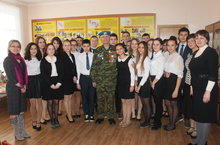 Учащиеся 8б класса с классным руководителем Хасиповой Л.Н. поздравили Сиразетдинова Ислама Киямовича с Днем защитника Отечества.