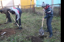 В гимназии стартовала осенняя неделя добра . Учащиеся 8Б класса посадили деревья во дворе гимназии