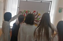 Сегодня состоялась акция «Оставь свой след» - добрые пожелания гимназии. Были проведены различные игры и тесты.