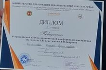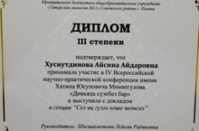 9Б сыйныф укучысы, Хөснетдинова Айсинә, Х.Миңнеголов исемендәге IV Бөтенрәсәй фәнни-гамәли конференциясенең “ Сез иң гүзәл кеше икәнсез” номинациясендә катнашты һәм III дәрәҗәдәге Дипломга лаек булды.