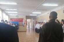 Сегодня на утренней линейке перед учащимися гимназии выступил участник СВО учитель истории Салимов Д.Д.