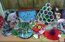 В фойе гимназии на первом этаже организована выставка новогодних поделок "НОВОГОДНЯЯ СКАЗКА". Ученики начальной школы совместно с родителями изготовили поделки и игрушки на новогоднюю тематику.