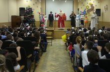 Для начальной школы в актовом зале была показана новогодняя сказка "Приключения Буратино в Новом году". После этого Дед Мороз, Снегурочка и лесные друзья танцевали, играли с детьми и загадывали загадки и вручали сладкие подарки активным ребятишкам. Было увлекательно и интересно. Спасибо всем, кто принял активное участие.
