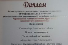 22 март көнендә гимназиянең 9 сыйныф укучылары Туфан Миннуллин исемендэге IV республика конференциясендә катнашып кайтты. К.Тинчуринның "Зәңгәр шәл" спектаклен сәхнәгә кую - безнең балаларыбызның театрга карата мәхәббәтен менә инде ничәнче кат исбат итте. Алга таба да аларга уңышлар, яңадан-яңа әсәрләрне сәхнәләштереп, тамашачы күңелен яулап алырга насыйп итсен!